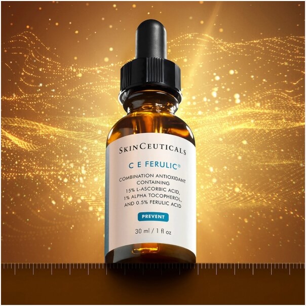 C E Ferulics combines 15% pure vitamin C (L-ascorbic acid), 1% vitamin E, and 0.5% ferulic acid to fight free radicals from pollution, sun exposure, and metals—reducing oxidative damage by up to 41% and strengthening skin by 8x. It also enhances brightness, combats photodamage, and promotes a firmer, more youthful complexion.